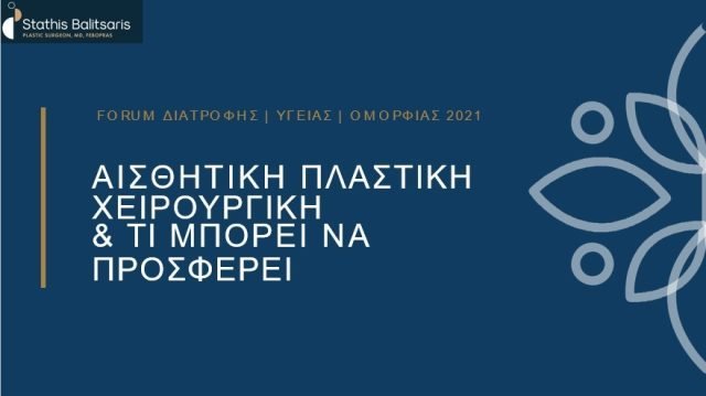 Ο Στ. Μπαλιτσάρης παρουσίασε ως ομιλητής το θέμα “Η αισθητική πλαστική χειρουργική και τι μπορεί να προσφέρει”, στο “6ο Forum Διατροφής, Υγείας, Ομορφιάς” που διοργανώθηκε τον Οκτώβριο του 2021 στο Ζάππειο Μέγαρο. Το Forum πραγματοποιείται υπό την Αιγίδα του Υπουργείου Τουρισμού, της Περιφέρειας Αττικής, του Δήμου Αθηναίων, του Ιατρικού Συλλόγου Αθηνών, του Οργανισμού των Ηνωμένων Εθνών για την Εκπαίδευση την Επιστήμη και τον Πολιτισμό και της Ελληνικής Φαρμακευτικής Εταιρείας.